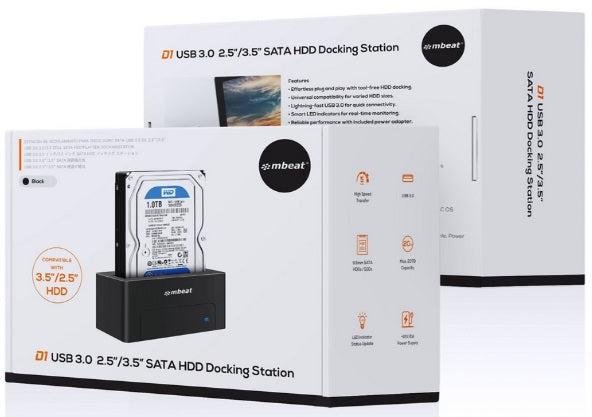 mbeat D1 USB 3.0 3.5" & 2.5" SATA HDD Docking Station - Black Product Weight: 250g HDD Capacity:Max. 20TB Data Speed: Max. 5Gbps