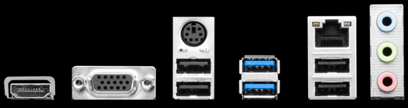 | Onboard Graphics | 1x HDMI™ Support HDMI™ 1.4 with HDR, maximum resolution of 4K 30Hz* 1x VGA Support VGA, maximum resolution of 2048x1536 50Hz, 2048x1280 60Hz, 1920x1200 60Hz *Available only on processors featuring integrated graphics. Graphics specifications may vary depending on the CPU installed. |